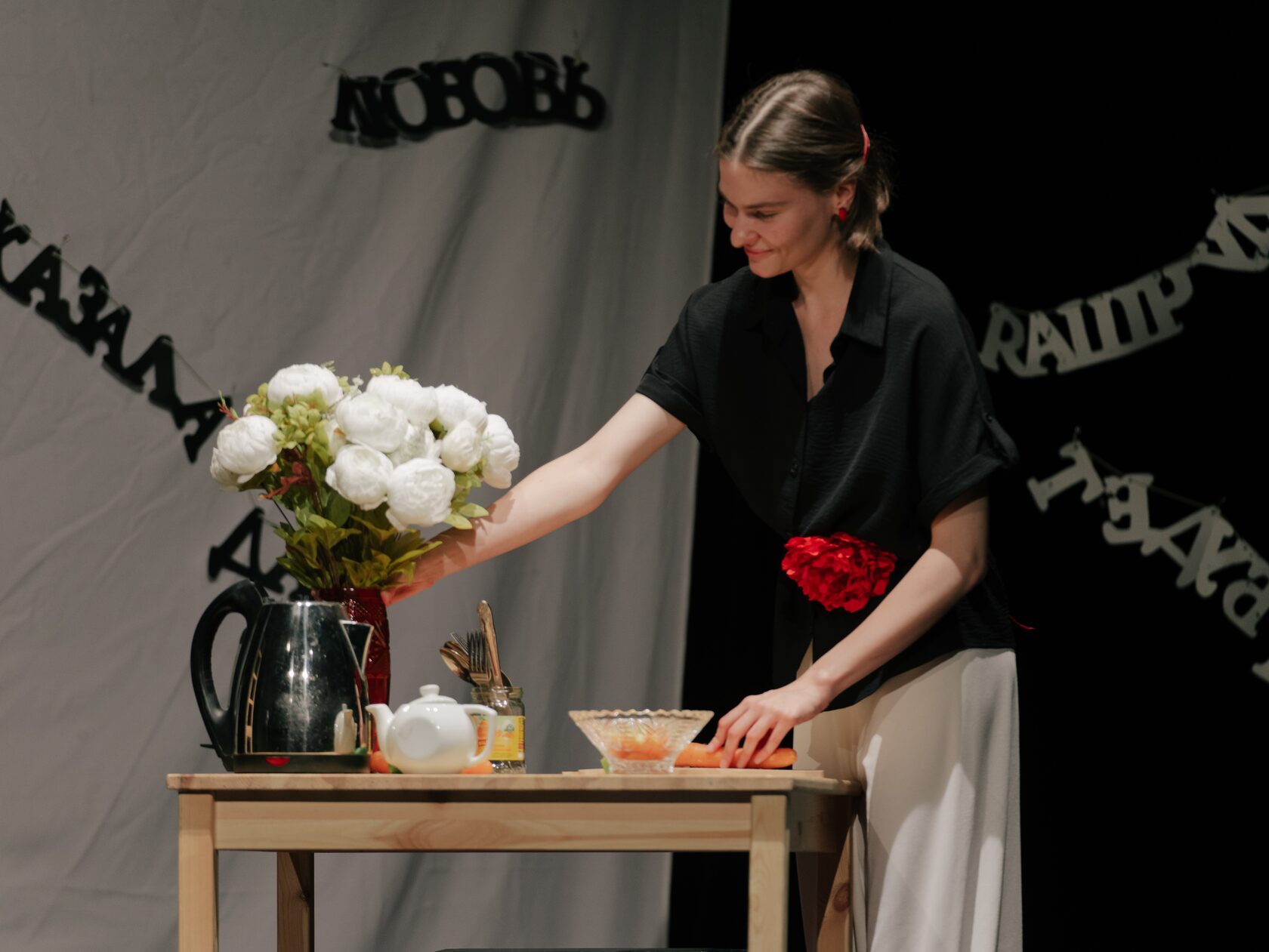 Когда сцена готова, наступает не менее важный этап — подготовка реквизита. А это бывает настоящим квестом, особенно в бытовых спектаклях, где много предметов, посуды и даже еды